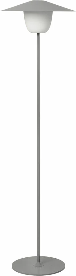 Alsidig, tilpasningsdygtig og lysende smuk. Den mobile LED ANI LAMPE med stativ er lavet af mat pulverlakeret aluminium og kan bruges overalt takket være det integrerede batteri. Den kan bruges som gulvlampe, liggende på bordet eller man kan hænge den op. Drejer man lampeskærmen, ændres lyskeglen. To niveauer af lysstyrke samt tænd og sluk kan styres ved kort at berøre ringene på lampeskærmen. For at genoplade kan lyset blot placeres på opladeren og oplades med USB-kablet. Reb, ladestation og USB-kabel medfølger. Indendørs/udendørs brug, brændetid: 8 til 16 timer, stænksikker.
