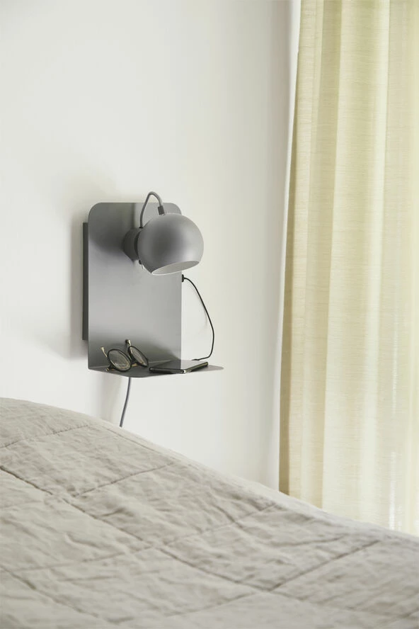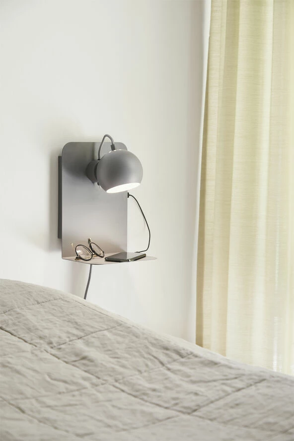 Ball væglampe med USB mat grå. Skærm ø12 cm. Højde 30 cm. E14 max 25W med 2,5 m grå tekstil ledning