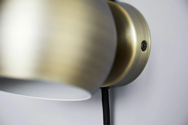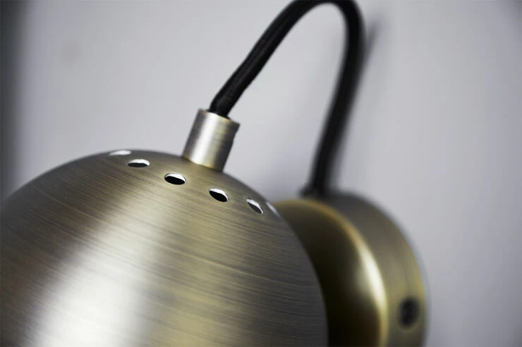 Ball magnet væglampe mat antik messing Ã12 cm. E14 max 25W med 2,3 m sort tekstil ledning