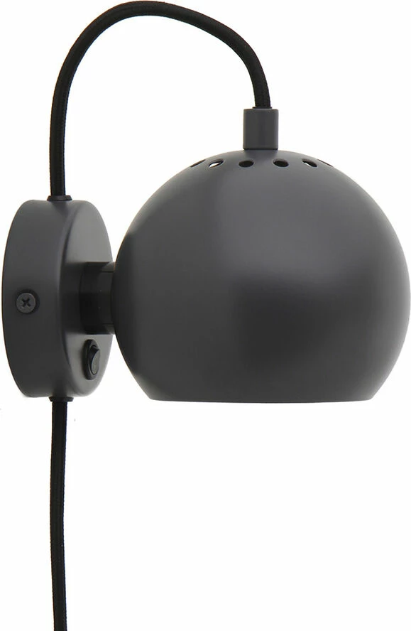 Ball magnet væglampe mat mørk grÃ¥ Ã12 cm. E14 max 25W med 2,3 m sort tekstil ledning
