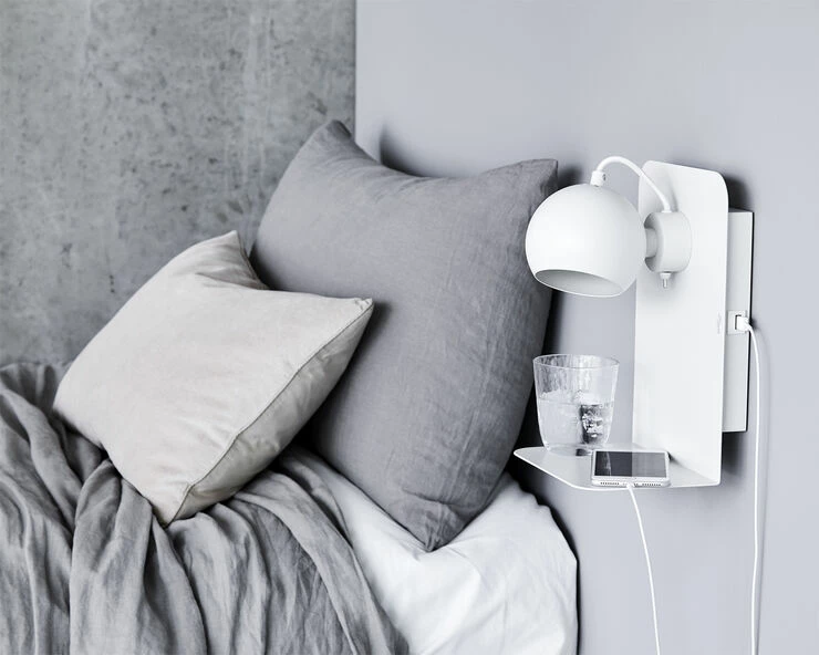 Ball væglampe med USB mat hvid. Skærm Ã12 cm. Højde 30 cm. E14 max 25W med 2,5 m hvid tekstil ledning
