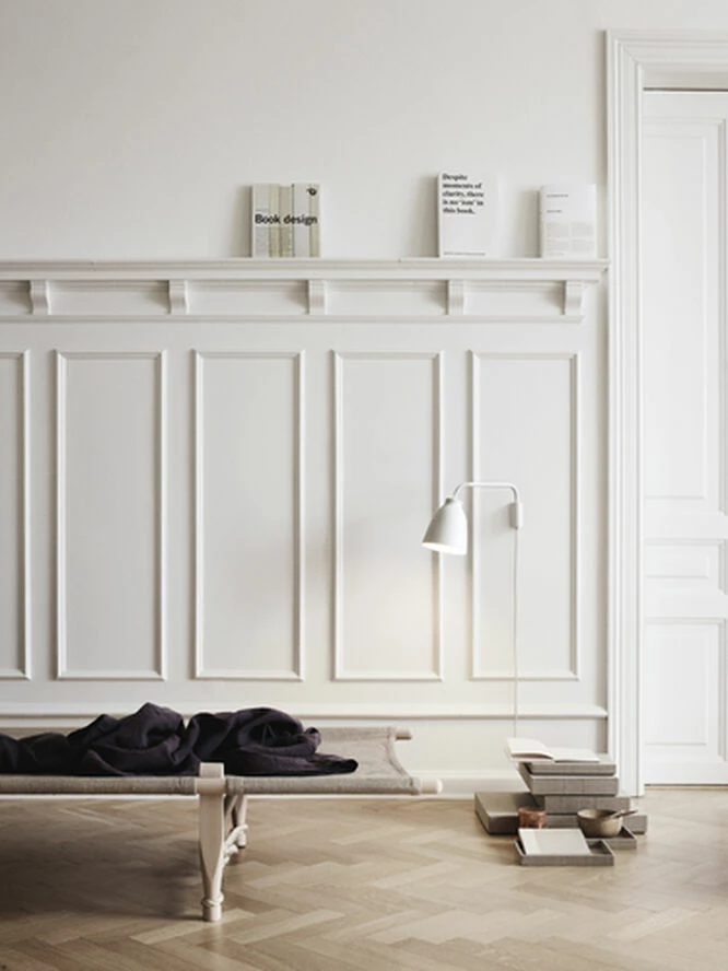 Baseret på den velkendte Caravaggio™ form har Cecilie Manz skabt en væglampe, der er stringent, raffineret og frem for alt funktionel. Den klassiske skærm er monteret på et flexrør, som gør det muligt at vippe skærmen og dermed styre lyset. Lampen kan ligeledes drejes 180 grader, hvilket gør den velegnet til alle rum, f.eks. stuen, køkkenet eller soveværelset. Kontakten er placeret diskret nederst på vægbeslaget. Alle lamperne har tre smalle slidser i toppen af skærmen som tillader lys at slippe ud. Metallamperne giver et blødt, nedrettet lys, mens opallampen giver et varmt, diffust lys. Caravaggio Read Wall™ væglamper fås i hvid, lys grå (grey25™) og sort mat lakering samt en mundblæst opal glas variant. Det neutrale farvevalg tillader væglamperne at indgå allevegne, også over tid.