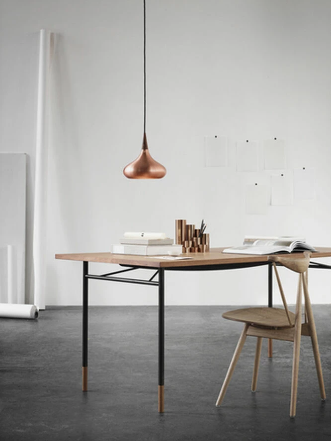 Orient-pendlen har et fejlfrit og let design i det fineste materiale, og foruden det giver den et fantastisk lys. Pendlen blev skabt af Jo Hammerborg i 1963 og relanceret af Fritz Hansen Lighting i 2013. Armaturet skjuler elegant lyskilden og sikrer et blødt og behageligt lys uden blænding. Lampeskærmen til Orient™ er håndoptrukket over en træform, en produktionsmetode der understreger den originale, organiske form og det sande håndværk, der ligger bag denne pendel.