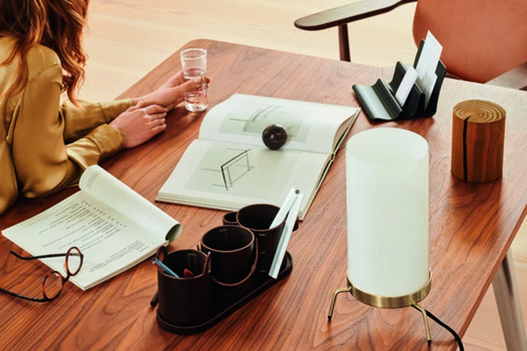 Fritz Hansens Planner-bordlampe, som er den nyeste tilføjelse til Fritz Hansens Planner-serie af relancerede design fra 1950’erne af den nu afdøde amerikanske designer Paul McCobb, emmer af minimalisme og har en udpræget skandinavisk stil. Det gennemtænkte, praktiske design er beviset på, at det enkle også kan være smukt, og spreder lyset fra en skærm i håndblæst, matteret glas, som giver en varm og stemningsfuld glød. Den trebenede fod i blank messing eller sort pulverlakeret stål giver en elegant kontrast til den høje, cylinderformede skærm. Planner-bordlampen er ideel til rum, hvor pladsen kan være trang – eller til at lyse rummet stemningsfuldt op. Den er ganske vist lille, men gør et stort indtryk: den diskrete silhuet kan lyse ethvert rum op på den smukkeste måde – på skriveborde og natborde, i entréer og på bordplader.