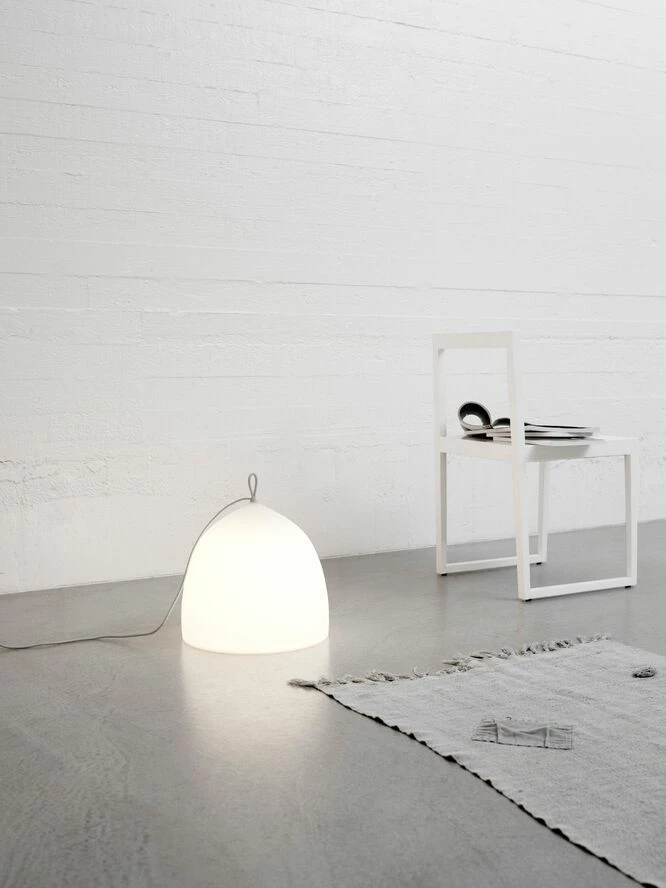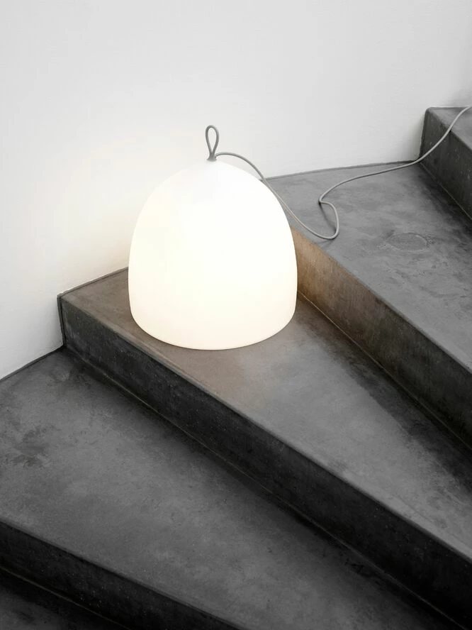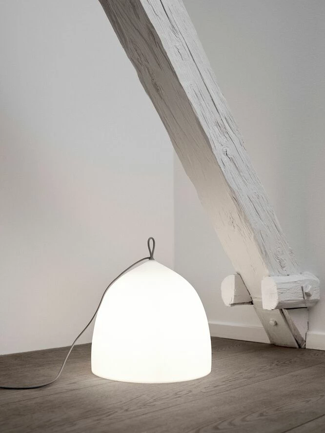 Med Suspence Nomad™ udfordrer GamFratesi vanetænkning inden for design og brug af lamper. Suspence Nomad™ fungerer som en almindelig gulvlampe, men den opfordrer til at blive flyttet fra sted til sted, uden at have et fast bosted præcis som nomadefolket. Lampen inviterer til uformel brug og flyttes let ved at løfte i det lille silikone håndtag i toppen af lampen. Suspence Nomad™ er lavet i polyethylen som er et stærkt materiale der giver et blødt og diffust lys og skaber en hyggelig atmosfære.