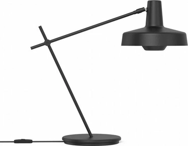 Arigato kort bordlampe har et funktionelt og flot design, der gør at den kan bruges som skrivebordslampe, samt stå flot på sidebordet ved sofaen, og give et godt lys til bogen. Bordlampen har 2 arme, hvor den ene står som støtte på lampefoden, og den anden kan justeres op og ned, samt holde lampeskærmen der kan roteres. Bordlampen giver et blændfrit og diffust indirekte lys, da lyskilden er skjult, og lyset reflekterer fra skærmens hvide inderside.