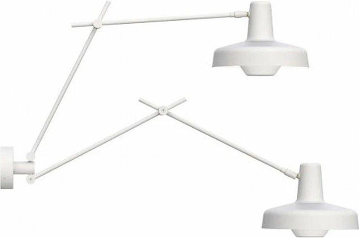 Arigato 2 væglampen har et meget spændende og funktionelt design, der kan passe ind mange steder i hjemmet. Væglampen har to arme der kan justeres op og ned samt fra side til side 180°, og de to lampehoveder kan roteres rundt, så man nemt kan rette lyset til den retning man ønsker. Lampen lyser blændfrit og diffust, da lyset reflekterer fra den hvide inderside af skærmen, og lyskilden er skjult med en blænde.