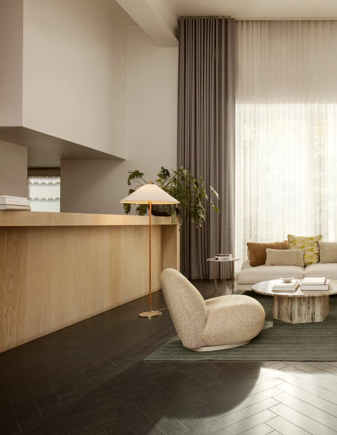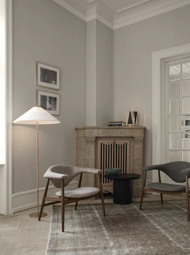 Gubi 9602 Floor Lamp, også kendt som “Chinese Hat” blev designet af Paavo Tynell i 1938 til hotellet Aulanko. Karakteriseret af sin elegante og luftige lampeskærm og rattan-beklædte stilk, viser 9602 gulvlampen designerens grænseløse fantasi og uovertrufne evne til at skabe designs af varig skønhed. Ved at tilføje en legende, sprudlende kvalitet til toppen, afbalanceret af basens mere statiske form, er 9602 gulvlampen perfekt egnet til at skabe et blidt omgivende lys i hjemmets stue.