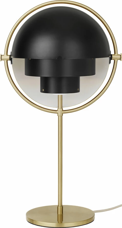 Multi-Lite Bordlampe designet af Louis Weisdorf Med denne flotte pendel fra GUBI, får du en karakteristisk loftslampe i sort med ring i messing. Louis Weisdorf er designeren bag Multi-Lite, hvor hver detalje i lampen er gennemtænkt. Pendlens form består af to justerbare skærme, der vender mod hinanden, hvilket gør lampen funktionel i og med at det er muligt at tilpasse lysets spredning i rummet. Den elegante Multi-Lite pendel vil tilføje et eksklusivt udtryk til rummet. Louis Weisdorf Bordlampe Designer: Louis Weisdorf Type: Bordlampe Materiale: Metal Farve: Messing, sort Lampe højde: 500 mm Skærm diameter: Ø255 mm Fatning: E27 Anbefalet pære: Halogen Anbefalet Watt: 46W Max watt: 57W