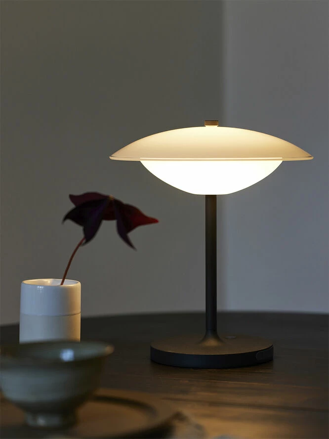 Hvis der er noget, der for alvor er kommet tilbage i indretningen, så er det lamper i opalglas. Selvom den franske specialitet har mange år på bagen, er det ikke blevet mindre moderne i årenes løb. Det er Baroni Move fra Halo Design, som er designet af Michael Waltersdorff, et elegant eksempel på. De to smukke glasskærme henleder tankerne på kridhvide, sandslebne og bløde muslingeskaller, der udover at kaste et smukt lys ud i rummet også sætter et elegant og let præg på indretningen. Lampen har en opladelig funktion, der gør den ledningsfri – så lad Baroni Move gå på rundtur i hjemmet, hvor den kan bringe lys og udtryk til netop dét hjørne i boligen eller på terrassen, der trænger til at blive lyst op. Om det er på skrivebordet, i vindueskarmen eller til en udendørsaftenstund, der skal forlænges med lys på bordet.