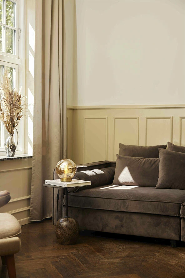 Den tilsyneladende enkle form af Bubbles-lamperne er faktisk et studie i geometri, hvor proportionerne er afbalanceret mellem de tre sfærer, der udgør lampen. Det samlede udtryk byder på transparenter og refleksioner via et bredt udvalg af farver og kombinationer af glas- og stålelementer.