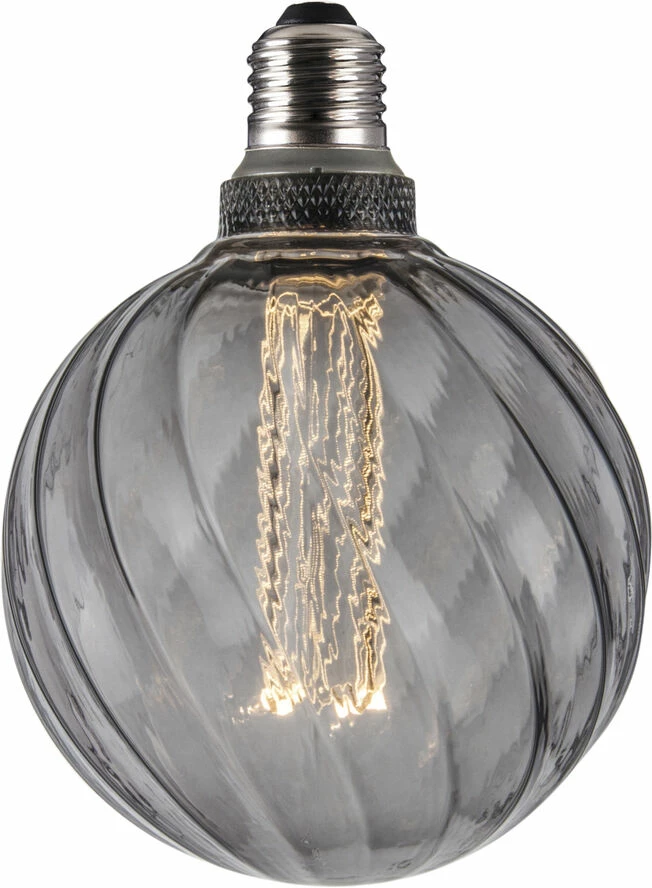 COLORS TWIST Smoke lyskilde fra Halo Design er en LED lyskilde der giver et varmt behageligt lys, og med det smukke design med det specielle snoet glas, får man ikke blot et smukt lys men samtidigt også en pære der afgiver et smukt design i sin form og udstråling. Lyset som ses igennem det smukke dekorative glas er som vi kender det fra de gode gamle dage bare med en mere dagslysfarve 3000 kelvin grader – her får man skabt rammen om at kunne skabe samme stemning med hyggeligt lys til behagelige omgivelse. Lyskilden er med klart smoke glas og spreder lyset 360 grader, hvilket giver den perfekte belysning i rummet. vi kan varmt anbefale hvor den sidder frit synlig i en fatning. Til trods for at den kun forbruger 5 watt, er den og dæmpbar det vil sige at man via sin kontakt i væggen kan dæmpe den i 3 trin, så er der rig muligt for netop at kunne skabe præcis den stemning i rummet man ønsker. TWIST lyskilderne er tillige med Memory funktion, som gør at den husker sidste settings og starter derfor op præcist hvor du slukkede sidst. Serien findes i flere størrelser og farver, der findes også en til din lampe.