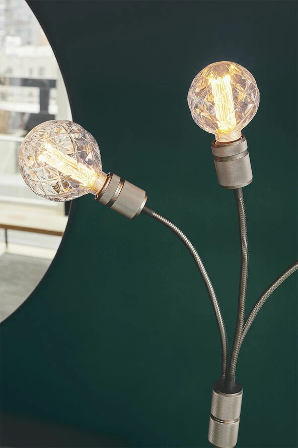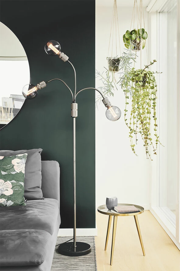 Halo Gulvlampe fra Halo Design er den nye unikke gulvlampe med 3-fleksible arme i metal og med marmor fod, designet af Michael Waltersdorff. Leveres med sort tekstilkabel hvor der ligeledes er monteret fodafbryder. Halo guv-3 er i den nye flotte Gun Black farve, passer perfekt ind i tidens trend og stil. Den er designet med riflinger på fatningen som giver det rå look og med denne nye farve, er man med helt i front på tidens design og mode. Man har mulighed for at benytte et væld af forskellige lyskilder, sådan at man kan skabe de perfekte rammer for belysningen i netop det rum man udsmykker sit hjem med denne lampe, hvilket giver en bred vifte for at skabe en hyggelig stemning. Med sine 3x E27 fatninger er der rig mulighed for at finde netop den stemning med et hav af forskellige lyskilder hvorpå man kan skabe den stemning der skal til. Ønsker man at kunne dæmpe lyset, anbefaler vi at benytte Halo designs 3-steps dæmp lyskilder, som findes i en bred vifte af størrelser og former -så er valget dit eget. Monteringen er super enkel og nem. Velegnet til de fleste rum i hjemmet.
