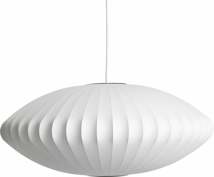 George Nelson Bubble lamp for Herman Miller, available from HAY The Nelson Saucer Bubble Pendant’ har en stor overflade og giver et blødt lys – uanset rummet. Lampen leveres med en stålplade, som kan bruges som loftplade. George Nelson, designer og idemand, blev oprindeligt inspireret af svenske silkelamper, da han i 1952 designede ‘the Bubble Lamp series’.