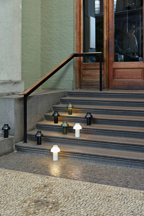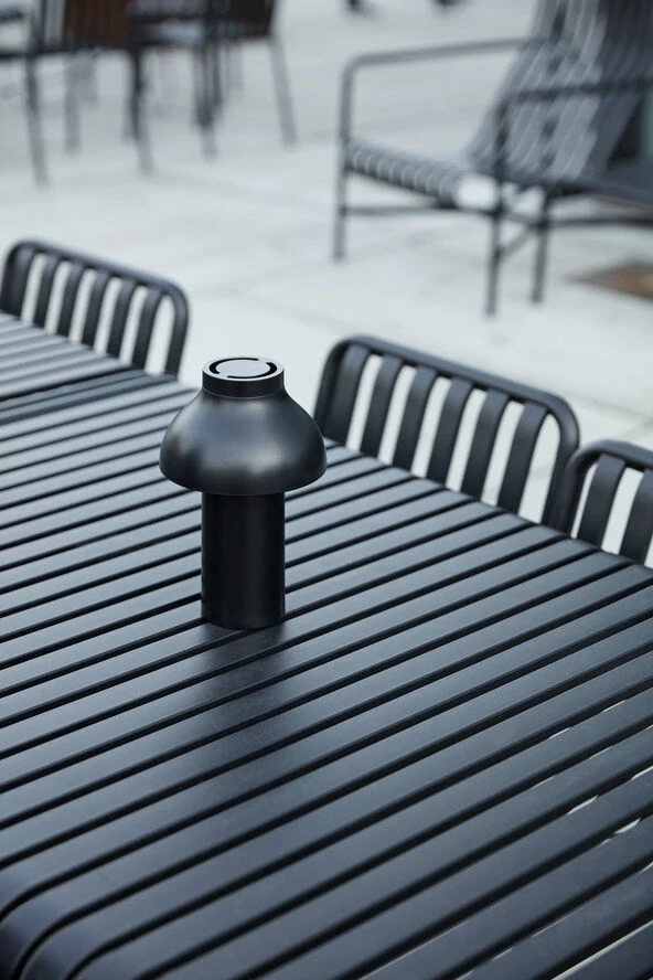 Pierre Charpins PC Portable Lamp er en raffineret, bærbar og fritstående lampe, der kan bruges indendørs og udendørs. Lavet af robust plastik og udstyret med en mat, ridse- og vandfast finish. Dens batteridrevet design giver friheden og fleksibilitet til at flytte den hvor som helst. Lyskilden er skjult af en polykarbonat-skærm, der fås med både downlight og omgivende lysmuligheder, alt efter ønsket brug. PC Portable lamperne fås i forskellige farver og er ideelle til bordlys i hjemmet, såvel som i cafeer, restauranter og andre offentlige steder.
