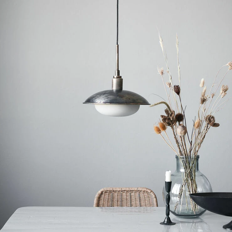 Opdatér din spisestue med den lille pendel kaldet Boston. Det er designet af House Doctor i et look, der perfekt balancerer det industrielle med en tidløs elegance. Klassiske former og moderne metal mødes i denne lampe, som er ideel til mindre spiseborde. En diffusor sikrer, at lyset ikke blænder og irriterer, men spredes ud, hvilket skaber en atmosfære, der er velegnet til hyggelige middage. En rund pendel som denne er ideel til dit spisebord og passer til enhver indretningsstil. Pære ikke inkluderet. Køb en G9 LED-pære separat. Ledningslængde: 3m.