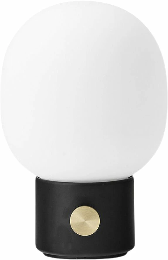 Our classic JWDA Lamp in a cordless version. Inspired by traditional oil lamps and crafted in contrasting materials, the JWDA Portable has the freedom and flexibility to move anywhere you want. Delivering 10 hours of adjustable light when fully charged, the small-scale design is defined by its elliptical glass shade and solid metal base with a brass dimmer switch. It features a USB charger at the base, for standard sockets as well as MENUs Charging Board, which reanimates multiple devices in a single sitting. [dimensions-start] H: 21,5 cm, Ø: 14,5 cm, W: 14,5 cm [dimensions-end] [materials-start] Steel, glass, ABS [materials-end] [additional-resources-start] DOWNLOADS PRODUCT FACT SHEET 2D/3D FILES ASSEMBLY INSTRUCTIONS [additional-resources-end] [vimeo-video-embed-start] https://vimeo.com/603855567 [vimeo-video-embed-end]