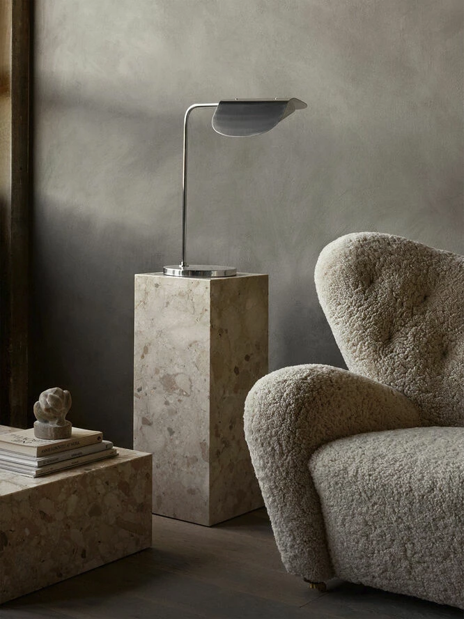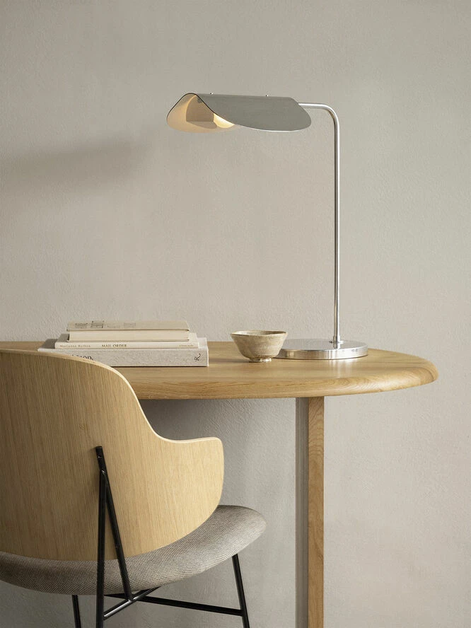 The Wing Table Lamp takes its name from its wing-like shade, reminiscent of a bird in flight. Imagined in the 1980s by Kenneth Bergenblad, the stringent design has a playful feel. The polished aluminium shade rotates to direct light where it is needed. A statement-making piece in any setting, its minimal aesthetic ensures it blends seamlessly into any décor style.