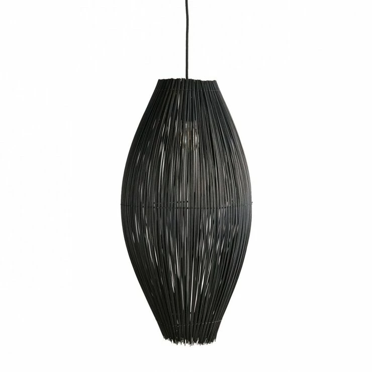 Smuk fishtrap lampe fra MUUBS i sortmalet bambus. Lampen er inspireret af naturen og de traditionellle fiskefælder, som har været brugt i mange kulturer igennem generationer. Lampen er håndlavet og skaber et smukt og hyggeligt lys ud i rummet. Lampen kommer med 2,5 M stofledning men uden pære. Lampen fås også i naturfarvet samt i mindre størrelser.