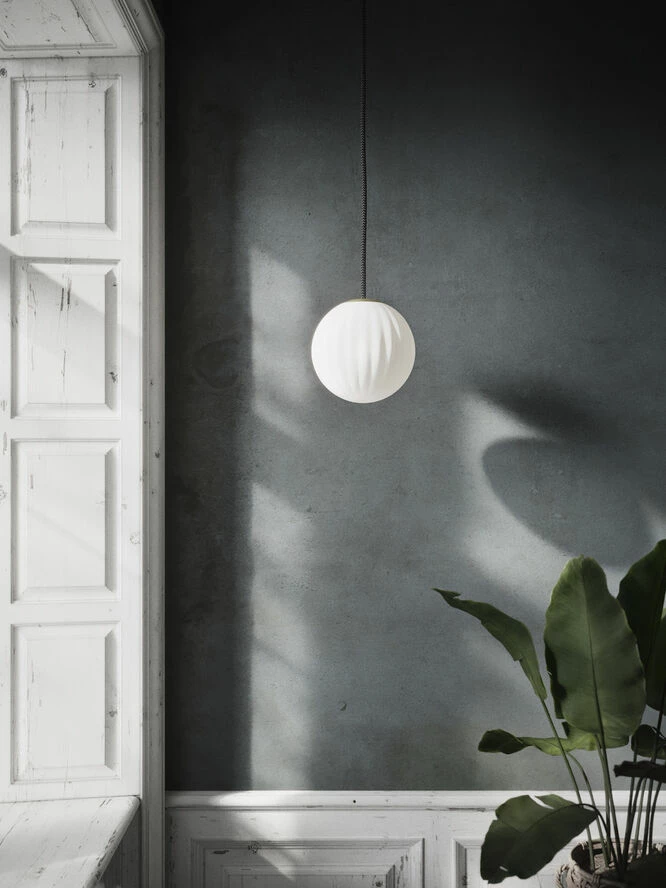 Nordic Tales’ Bright Modeco Pendler lamper omfavner begrebet “Artdeco” på en klassisk og elegant måde. Det rene minimalistiske look kombineret med elegante bløde riller og messing detaljer giver et skønt udtryk. Det hvide opal glas giver et blødt diffust lys, der oplyser rummet i en helhed og giver en hyggelig atmosfære.