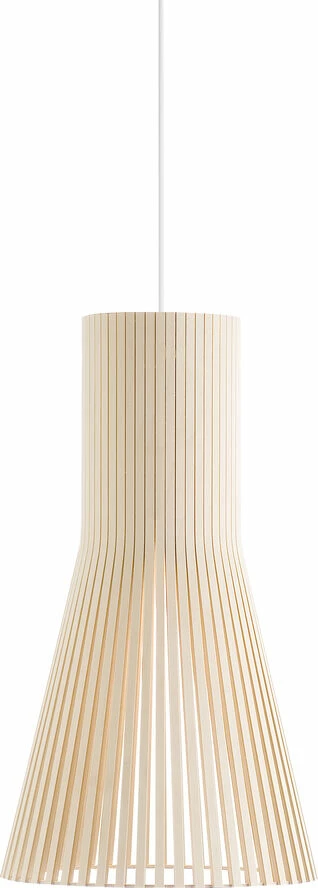 Handmade of PEFC-certified formpressed birch in Finland by highly skilled craftsmen. Material: Formpressed birch slats. Sizes: Height 45 cm. Diameter Ø 25 cm. Weight 1,2 kg. Light source: E27 base, LED max 20 W. Comes with a LED bulb (Airam Pro LED, E27, 12 W, 1060 lumen, 3000 K, pure white, dimmable, may vary). The use of special bulbs such as halogen, mirror or 12 V bulbs in Secto Design lamps is prohibited, due to overheating. Maintenance: Wipe dust regularly. To remove fresh stains wipe with a slightly moist cloth.