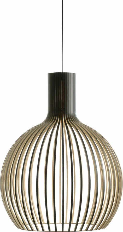 Handmade of PEFC-certified formpressed birch in Finland by highly skilled craftsmen. Material: Formpressed birch slats. Sizes: Height 68 cm. Diameter Ø 54 cm. Weight 2,0 kg. Light source: E27 base, LED max 20 W. Comes with a LED bulb (Airam Pro LED, E27, 12 W, 1060 lumen, 3000 K, pure white, dimmable, may vary). The use of special bulbs such as halogen, mirror or 12 V bulbs in Secto Design lamps is prohibited, due to overheating. Cable: 150 cm, textile cable, ceiling plug/connector, ceiling cup. Maintenance: Wipe dust regularly. To remove fresh stains wipe with a slightly moist cloth.