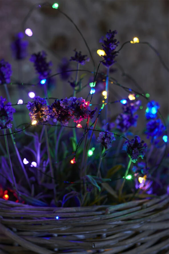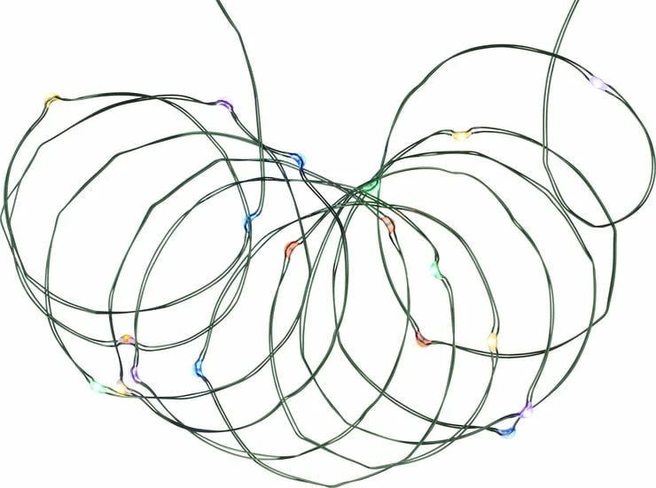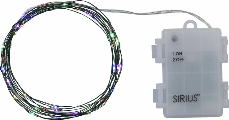 Sirius Batteri-Lyskæden Knirke har 40 meget små fine (0,5 cm) LED lys. Kæden er lavet med en fin tynd grøn ledning og pærerne er et mix af forskellige farver. Meget dekorativ kæde. Kæden har en udendørs batteriboks, og er velegnet til at skabe en fin stemning ude i haven. Kæden er 3,9 meter lang, og har et varmt naturligt lys. Dekorationen er batteridrevet og har en indbygget timer-funktion, der slukker lyset automatisk efter 6 timer, hvis du ikke selv slukker dem. Efter 18 timer tænder lyset igen, og sådan vil det fortsætte, hvis du ikke bruger sluk knappen. Batterier medfølger ikke. Der skal isættes 3 AA Batterier. Kan benyttes både indendørs og udendørs.