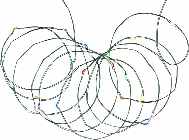 Sirius Lyskæden Knirke har 80 meget små fine (0,5 cm) LED lys. Kæden er lavet med en fin tynd grøn ledning og pærerne er et mix af forskellige farver. Meget dekorativ kæde. Kæden er velegnet til at skabe en fin stemning ude i haven. Kæden er 7,9 meter lang, og har et varmt naturligt lys. Kæden er 2 meter lang, og har et varmt naturligt lys. Kan benyttes både indendørs og udendørs. Leveres inkl. transformer og 5 meter ledning.