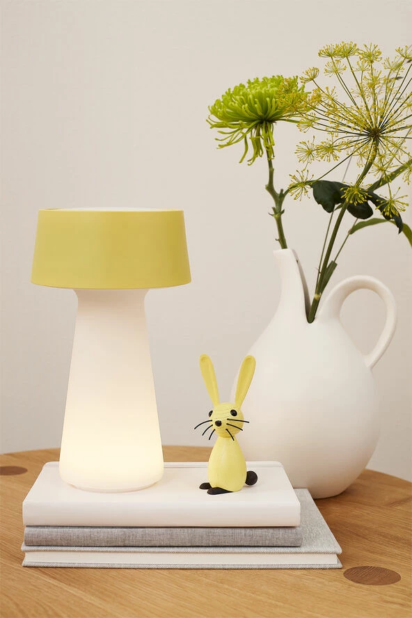 Ember er en skøn lille lampe, der er nem at oplade. Med sit bløde lys fungerer den godt som natlampe til soveværelset. Du kan også tage Ember med udenfor, når du vil nyde en aftenstund på terrassen eller altanen. I bunden af Ember finder du en lysdæmper. Her kan du skifte imellem Embers tre lysstyrker. Selve designet minder om en klassisk bordlampe, men som en opfindsom detalje, så kommer lyset ud af armaturet i opalglas.