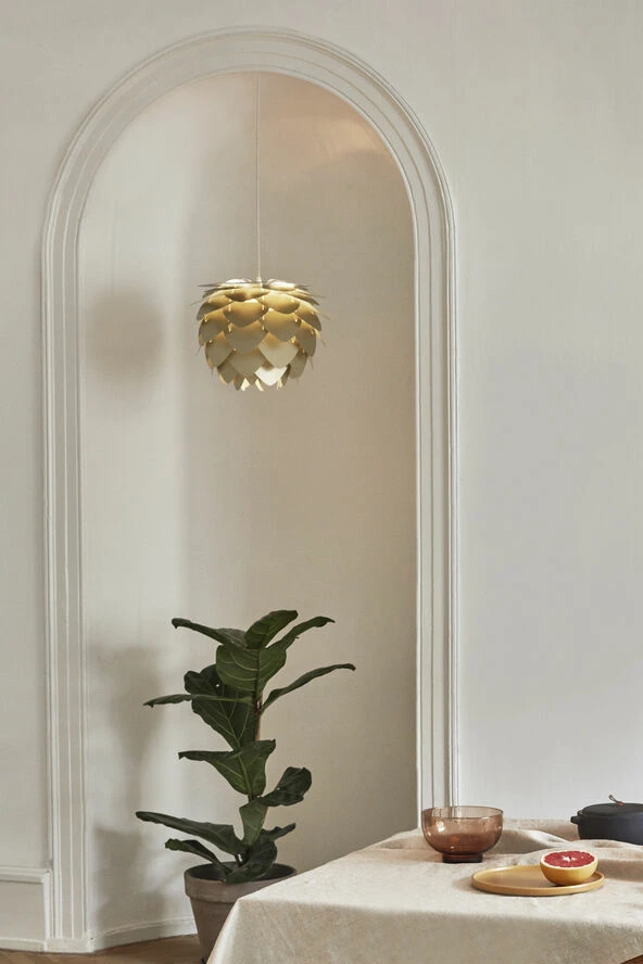 Inspireret af naturen med sine karakteristiske trekantede kronblade, kaster Aluvia i b›rstet messing et varmt og bl‘ndende omgivende lys, der ser lige s† godt ud, som det t‘nder.