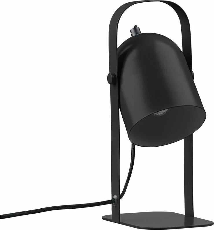 Bordlampe i sort jern med skærm, der kan vippes til den ønskede position. 1,5 m sort polyesterledning. E14-fatning. Maks. 25 watt.