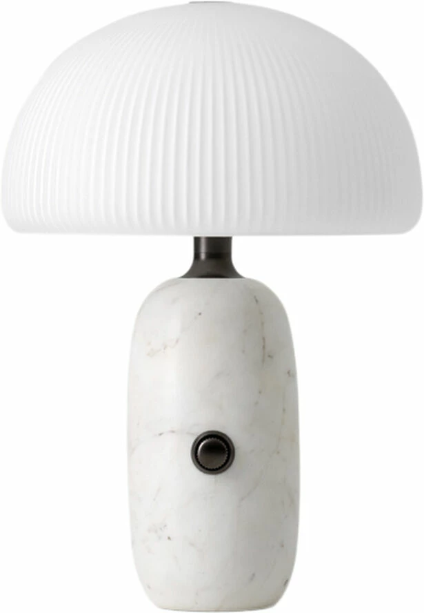 Den lille Vipp Sculpture bordlampe er ideel som dekorativ belysning og er velegnet til stuen eller soveværelset. En holdbar LED-enhed er skjult under en trelags opal glasskærm, der giver en hyggelig belysning. Den runde cylinderbund, der fås i enten grå eller hvid marmor, har en lysdæmper og en stofdækket ledning.
