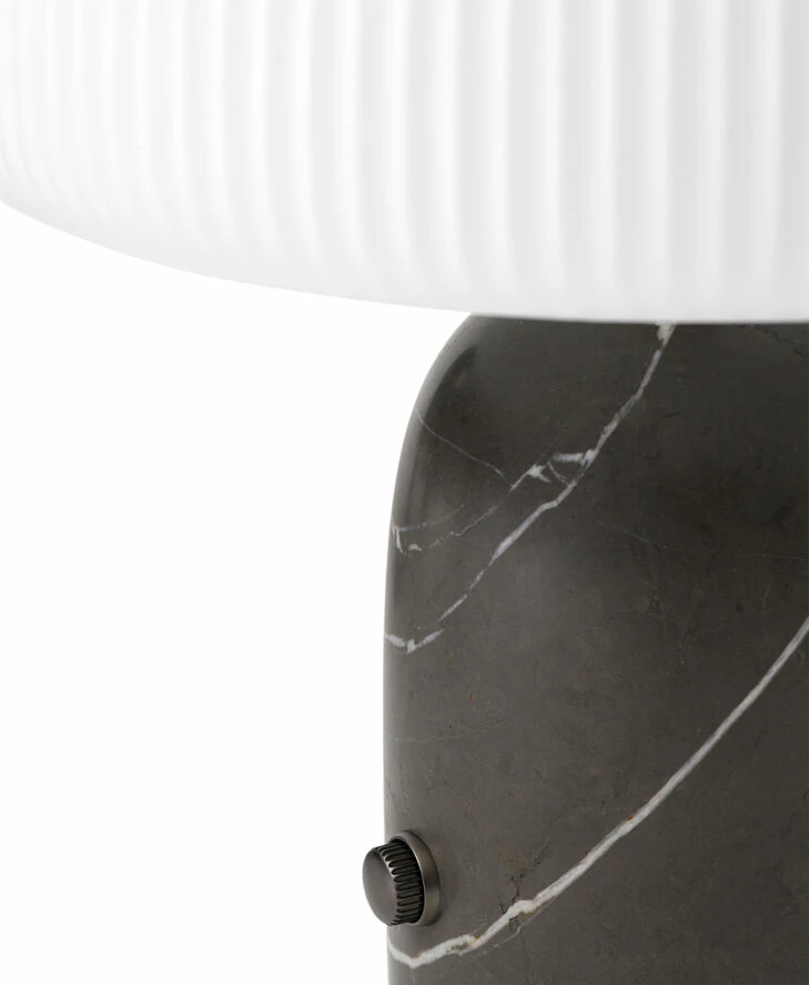 Vipp Sculpture bordlampen er ideel som dekorativ belysning og er velegnet til stuen eller soveværelset. En holdbar LED-enhed er skjult under en trelags opal glasskærm, der giver en hyggelig belysning. Den runde cylinderbund, der fås i enten grå eller hvid marmor, har en lysdæmper og en stofdækket ledning.